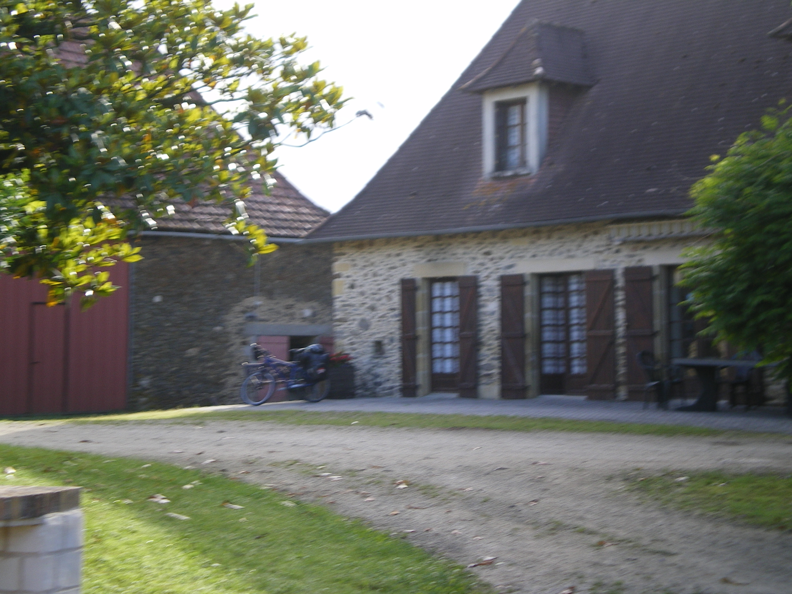Heute bin ich viel in der Natur und viel im Regen gefahren. In Périgueux habe ich einen langen Mittagsstopp gemacht und dann bin ich irgendwie an diversen Flüssen und Bächen hier im Périhord herumgegurkt. Irgendwann ging es mal wieder mächtig bergauf und da ich schon ein wenig müde und langsam wurde habe ich einen Bauern beim Kirschenpflücken gefragt, wo ich denn hier übernachten könnte (fernab der Zivilisation). Er schickte mich einen guten Kilometer weiter auf einen Bauernhof, die ein paar einfache Zimmer haben. Das ist ein kleines Paradies hier oben. Ich durfte sogar noch das Schwimmbad und man höre und staune den Whirlpool der Leute benutzen. Ich bin total begeistert und beeindruckt.